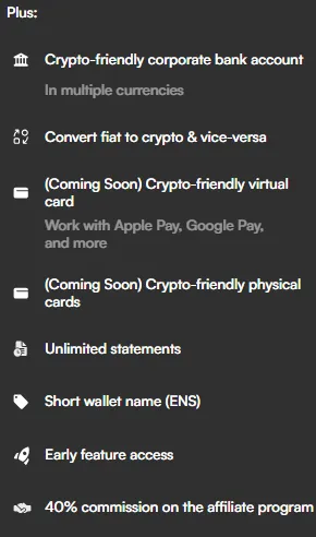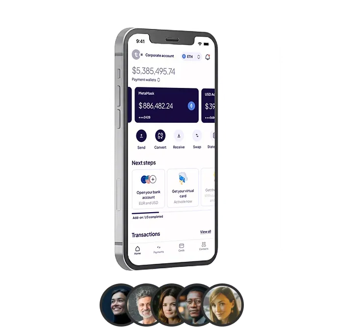 One solution for crypto, banking, cards, and freedom. Personal and corporate bankless accounts, crypto-friendly bank accounts, and cards - all in one place.